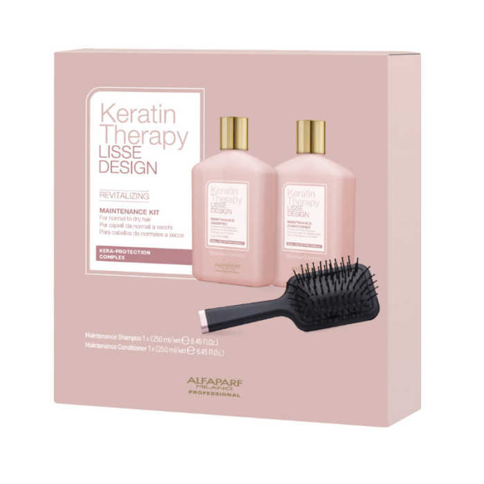 Komplektis Alfaparf LD Keratin Therapy Maintenance šampoon 250ml + Maintenance palsam 250ml + KINGITUSEKS juuksehari.